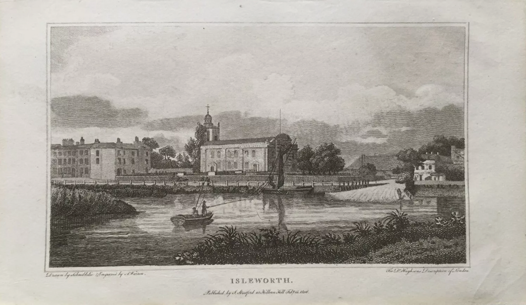 Antique, copperplate engraving of IsleworthDrawn by Jacob Schnebbelie, engraved by S.Warren for " Doctor Hugheson's Description of London "Published by J. Stratford 1806
