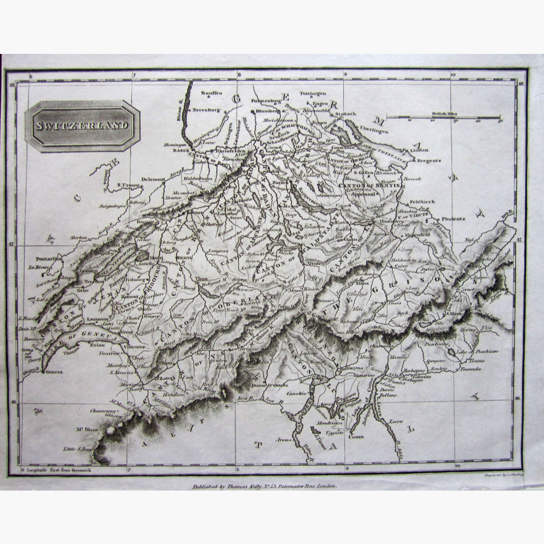 Antique steel engraved map, showing the Cantons of Switzerland. Engraved by S.Findlay. "Universal Geography", published by Thomas Kelly in 1821.