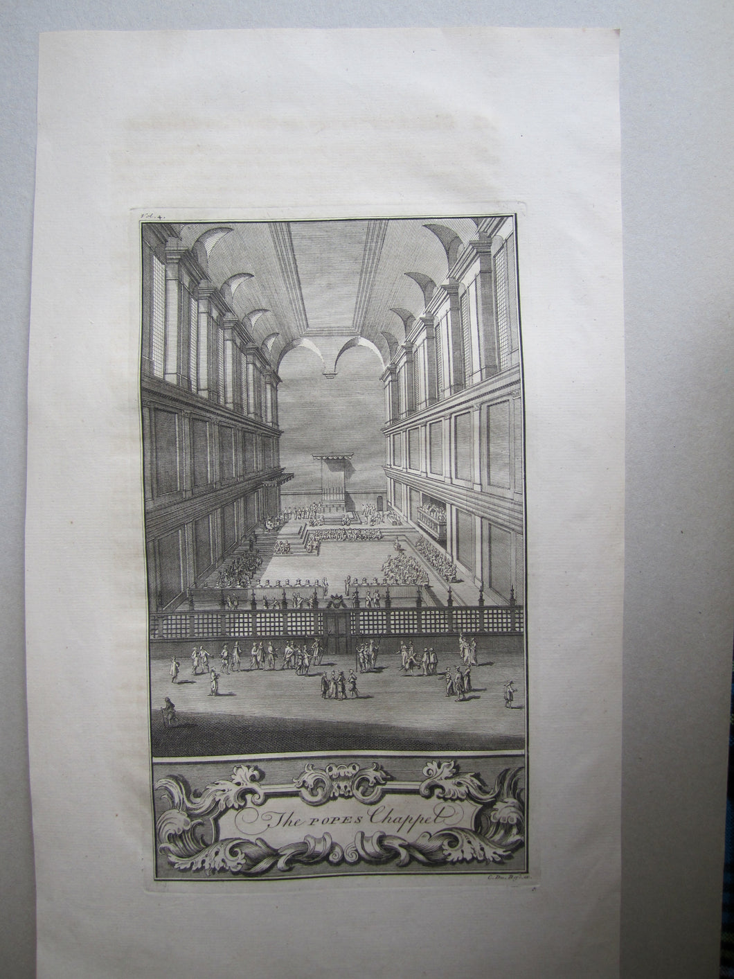 Antique Print, The Popes Chappel.Very fine copper plate engravings on hand made paper, by Bernard Picart, engraved by C.Du Boss, from “The Ceremonies and Religious Customs of Various Nations of the known world.” 1734.
